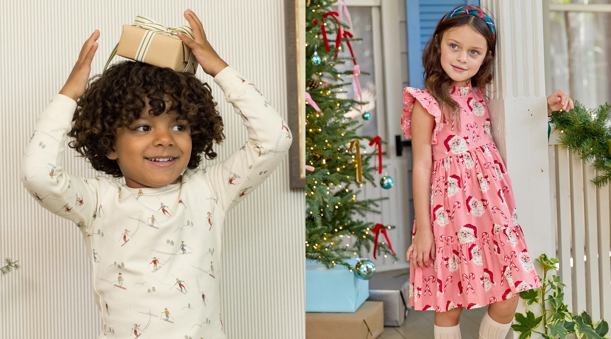 Pink Chicken Kids Bamboo PJ Set - Candy Cane Bows